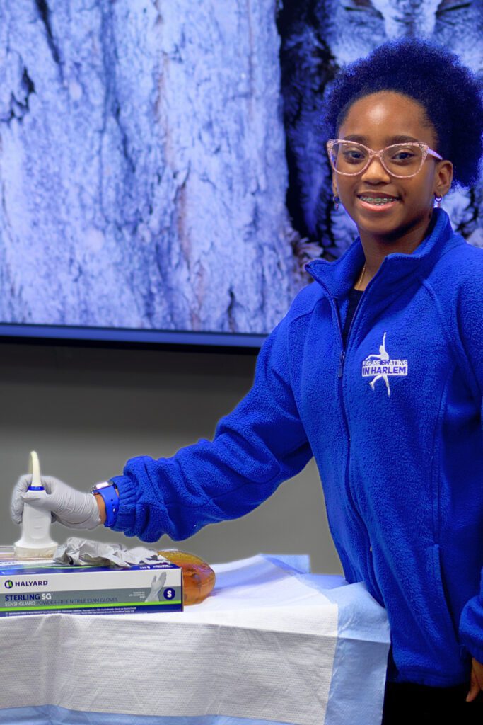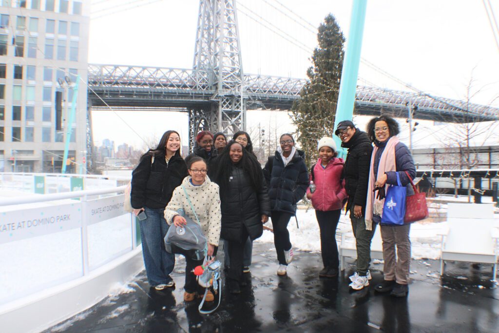 At Domino Park, students were gifted private ice time — uninterrupted practice to refine edges, strengthen jumps, and build confidence through repetition. They also toured rink maintenance operations to see what it takes to keep a sheet of ice performance-ready and how science and engineering power the sport.